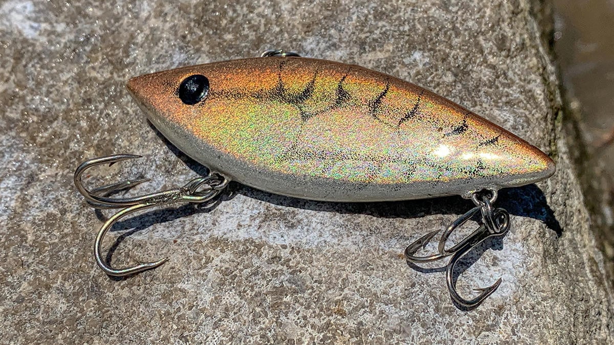 This was hands down Jason’s best lipless crankbait growing up on the Arkansas River. And as you might guess from its looks, it caught fish when the bass were feeding on crawfish and feeding on shad equally as well. Something about that color and G-finish was the hot ticket back in the 1980s. We’ll still pull one out in the prespawn fishing around stained water, and we’ve had some painted up but none ever matched the effectiveness of the original G-Finish craw.
