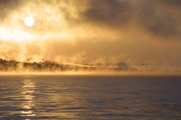 On a striper trip with some lifelong friends on Lake Ouachita back in 2001, we were idling out to a spot offshore where the stripers had been schooling early in the morning. It was early May and the water was cool but not cold and the afternoons were warm but not hot. This made for some dynamic fog. With the sun rising, the fog seemed almost on fire this morning. My buddies nudged me and said, “man, you probably should get your camera out.” Glad I did