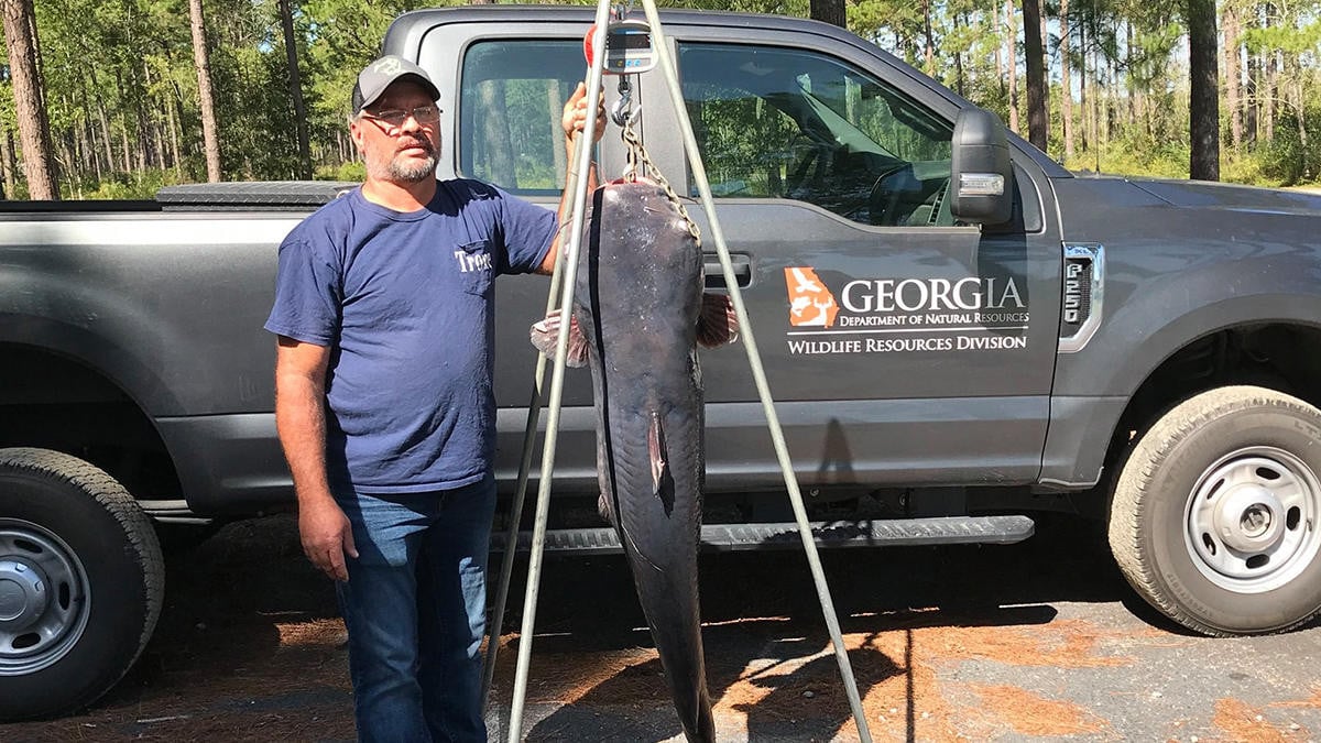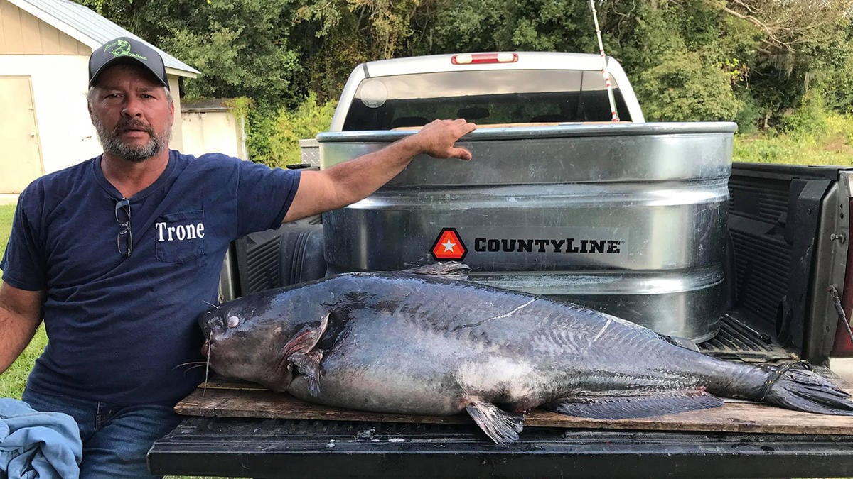 According to the Georgia Department of Natural Resources (GADNR), Tim Trone of Havana, Fla. caught the huge blue catfish on the Chattahoochee River in Stewart County. He was using cut bream as bait and the fish weighed a whopping 110 pounds, 6 ounces. The measurements were just as jaw dropping, with a 58-inch length and a 42-inch girth.