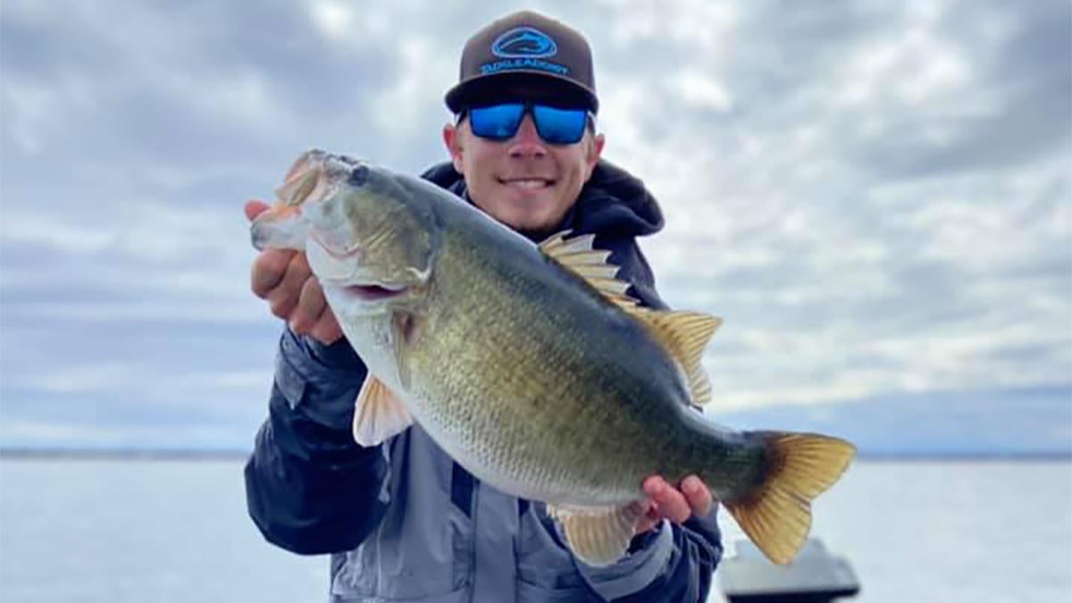 “It was no secret that OH Ivie was popping off, so we got down there about a week after all the big fish were getting caught, and the fish weren’t really grouped up anymore. So we just starting using Garmin LiveScope to scan down timber lines in 30-40 feet of water. It was overcast in the morning and the fish were scattered and roaming. As the wind blew me along, I spotted two dots about 60 feet out on the Livescope.