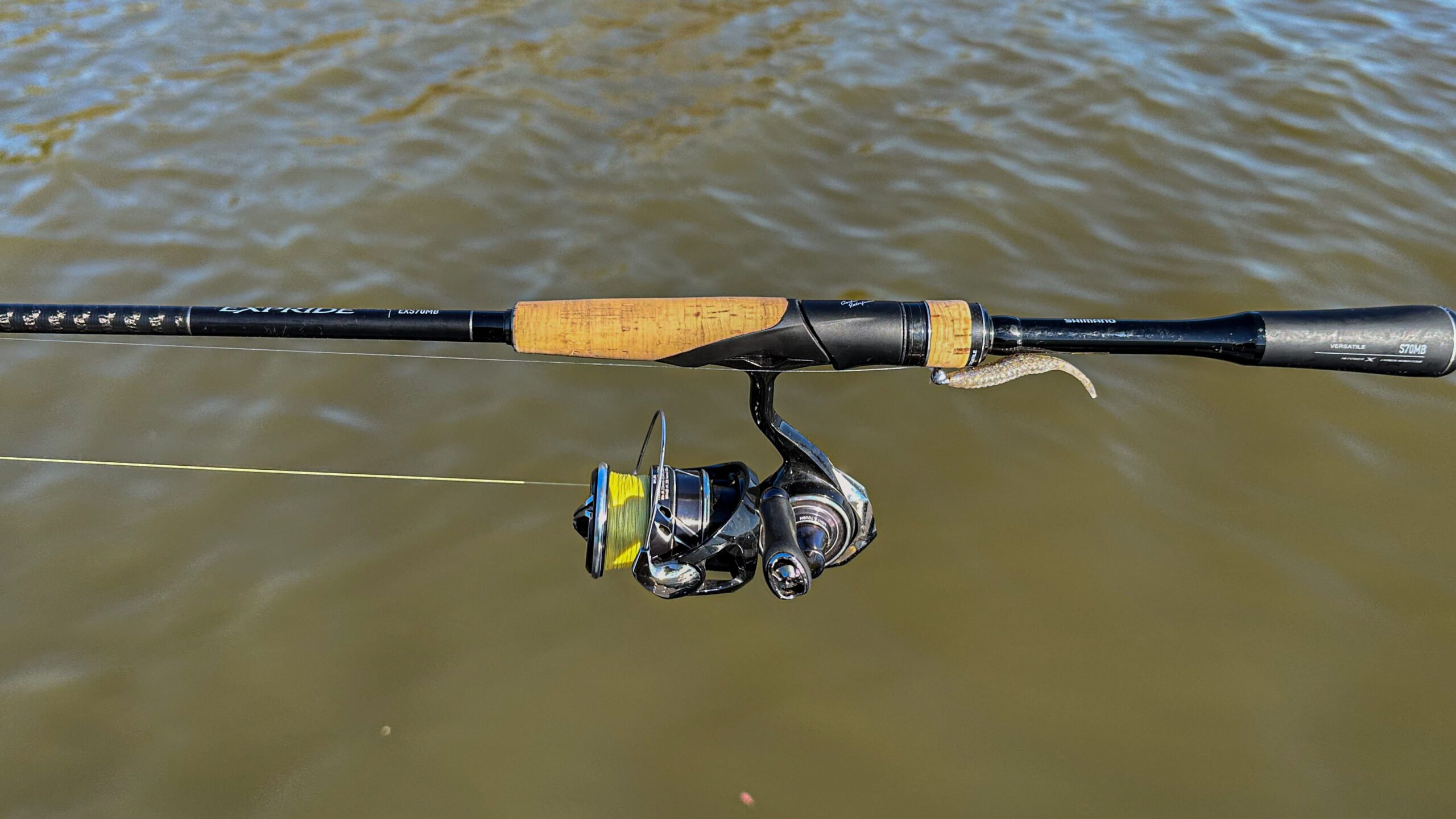When throwing the Versa Pintail 3.0, I like to pair it with a medium action spinning rod that features a parabolic tip. I also prefer a 3000 sized reel with 10-pound brain connected to a fluorocarbon leader. One great braided line option for this finesse technique is the Berkley X5 Braided Fishing Line. I generally like a shorter rod for increased casting accuracy at specific fish. One of my favorites is the 7-foot medium-action Shimano Expride B Spinning Rod. This rod blends both sensitivity and lightweight components to make a perfect pairing with the Duo Realis Versa Pintail.