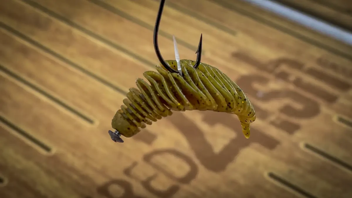 But the 3.8-inch Bellows Gill has been my go-to size. It gets in and out of cover, is a great sight fishing bait, is a great pitching and flipping bait. Fishes equally well in bushes as well as docks and grass and especially around bluegill beds.