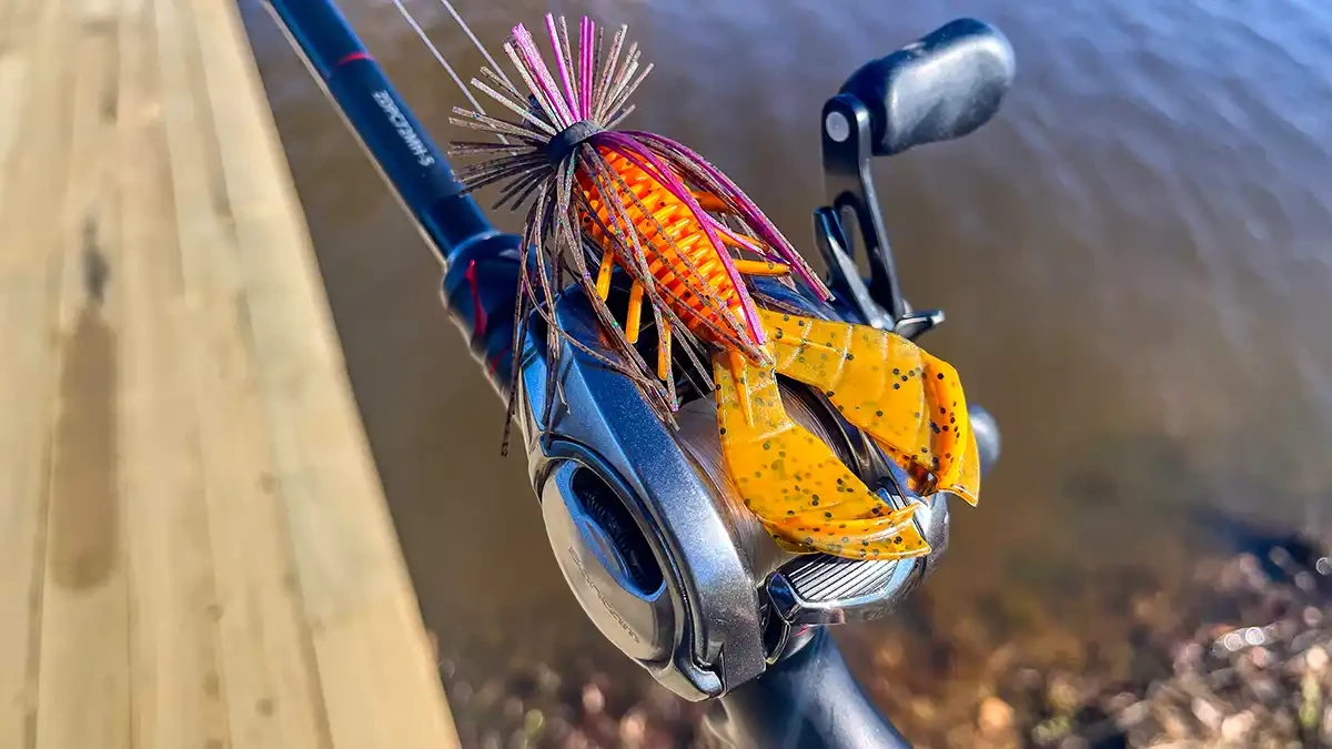 I have often caught bass on black and blue jigs with blue trailers or chartreuse trailers on a brown jig. I often will put a subtle color like green pumpkin or black with a bright color like orange or chartreuse. So you can do a lot more with your jigs by adding a trailer like a Chunky D that has contrasting colors to it.