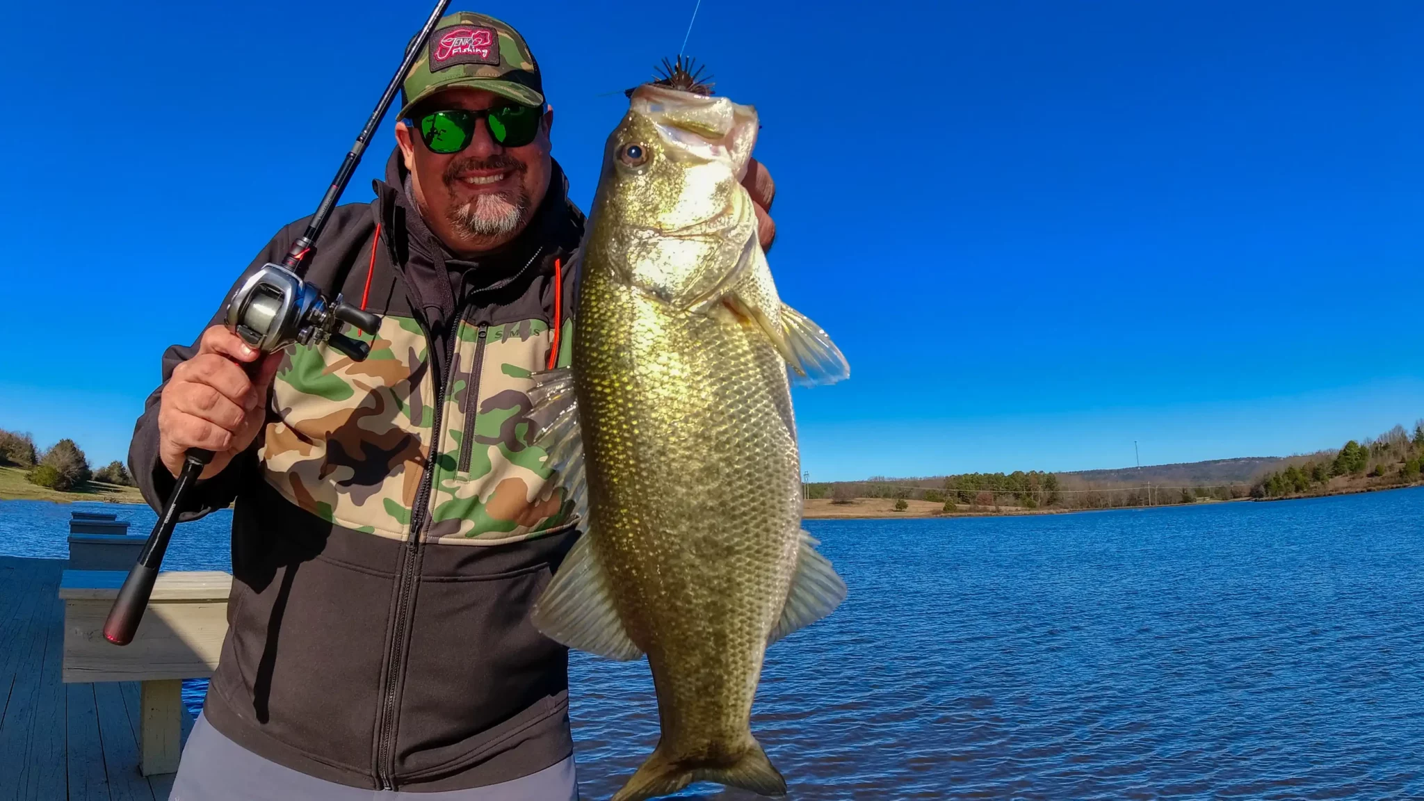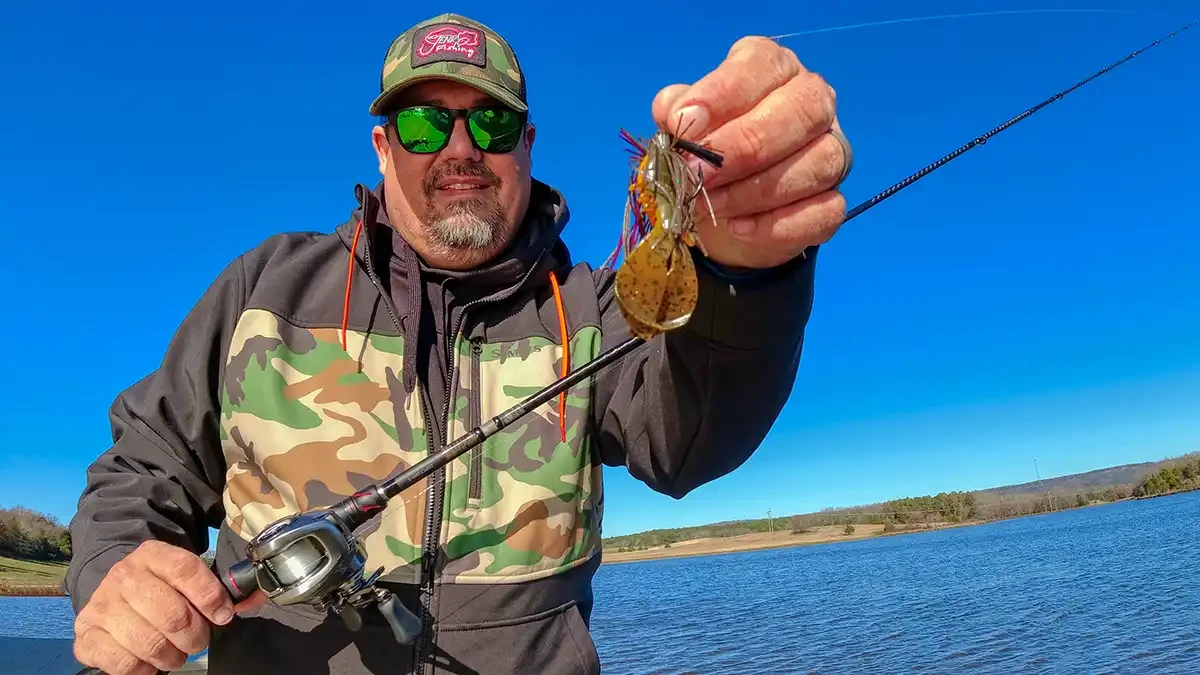 I fish a light finesse jig a lot this time of year. I put Chunky D on a 5/16 ounce Jewel Tactical Finesse HD Jig and it was a fire combination. The size of the Chunky D gave this jig an ultra slow fall, and a super slow swimming action that was perfect for cold winter bass on cover and drops. I caught fish slow swimming, popping the jig and just crawling it on the bottom.