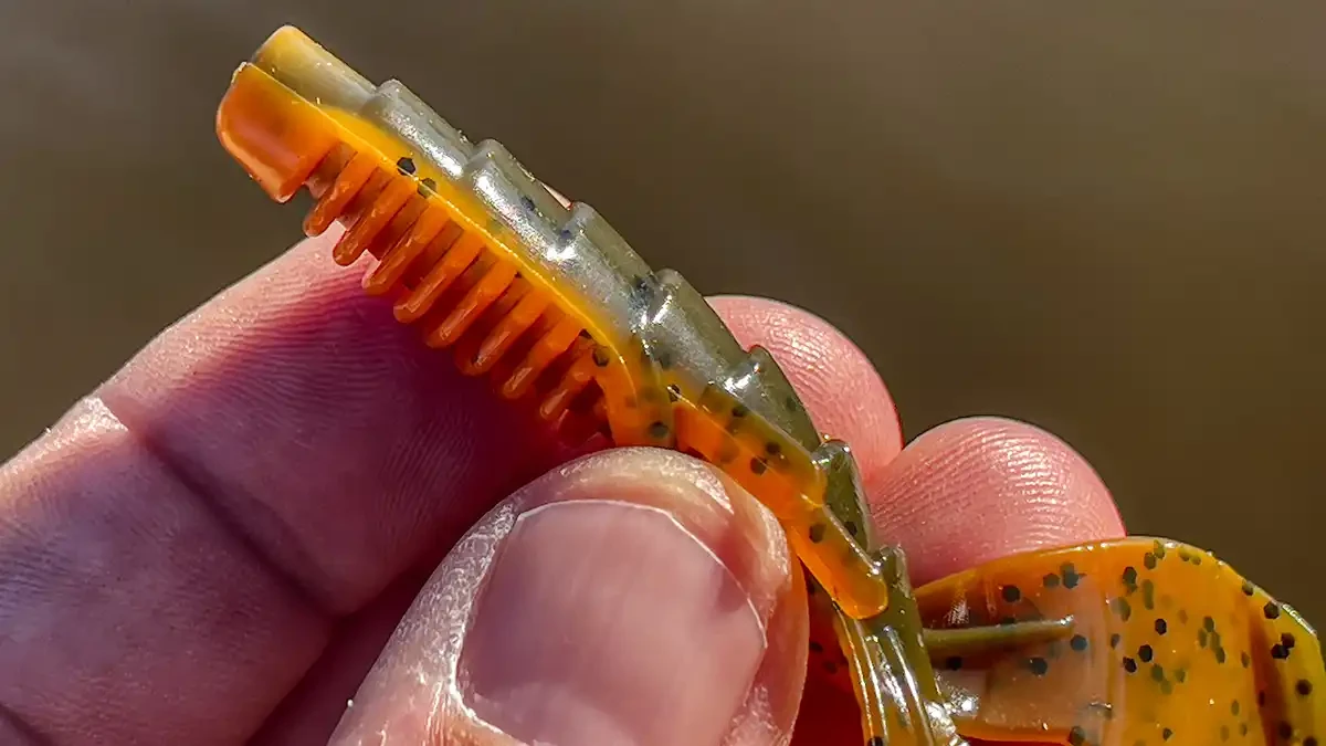 I like the tail design on this craw. I’m not a huge fan of craws with flappers out wide. I like them to be a little more streamlined and a better profile for skipping jigs and Chatterbaits around. Or slipping in and out of bushes and branches easily. So the fact that this trailer has a craw profile but is streamlined with a great tail kick makes it the pefect package for a lot of techniques.