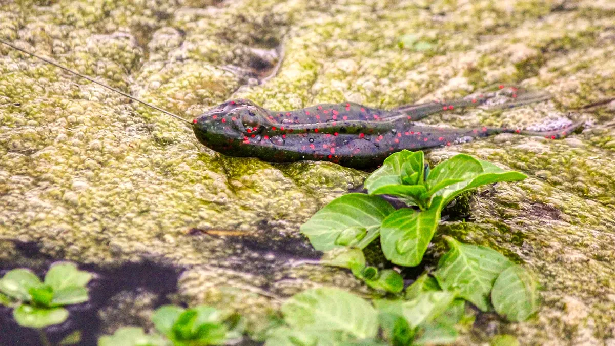 Paired with a Fitzgerald Fishing 7-foot, 10-inch Ledge Rod, a Lew’s Super Duty Speed Spool Reel and 50- pound Sufix 832 Braid, I set to flailing the BF Toad around. I chose to rig the toad on a weightless Gamakatsu 4/0 SuperLine EWG Hook for the task, wanting the bait to be as snag resistant as possible in the dense cover.