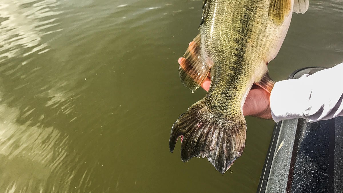 So any time I catch a bass with a bloody tail, I take that as a good sign. It means they’re moving shallow and they have romance on their mind. And if I’m being honest, when you run across the first wave of these early prespawners, they’re some of the dumbest fish in the lake. They will bite just about anything and you can have an unbelievable few days on the water. It’ll almost feel like a dream come true, so keep an eye out for those pale fish with bloody tails.