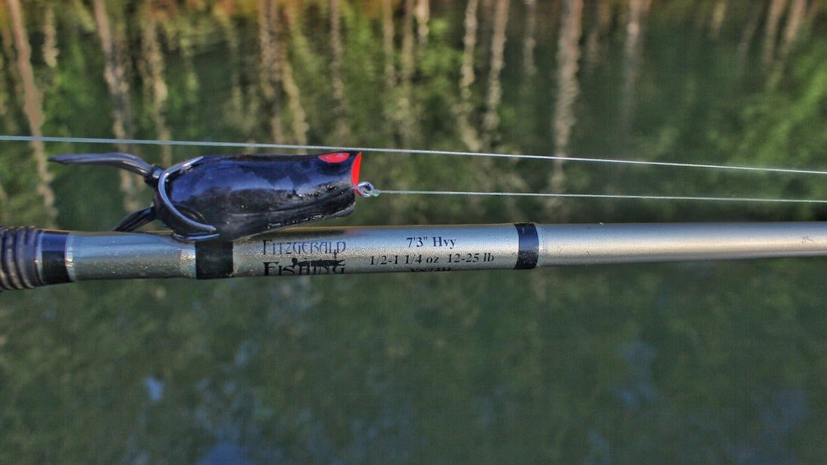 The rest of the gear I use is the same for both frogs. I like a 7-foot, 3-inch heavy-action Fitzgerald Fishing Vursa Series rod paired with 40-pound test Sufix 832 Braided Line and a Lew’s Super Duty LFS Speed Spool in a 7.5:1 gear ratio. The rod may seem like a little bit of an overkill to some of you but it has a softer tip than one would expect and a whole lot of backbone. It’s the perfect rod for me to allow little side-armed roll casts and still have enough power to haul a big bass out of nearly everything.
