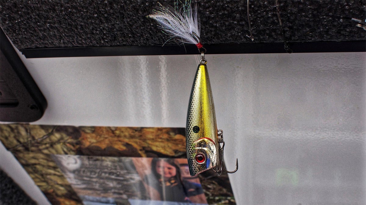 Lester tips his cap to the old school and throws a popper on 20-pound monofilament, a 7-foot medium heavy rod and a moderately fast 7:3:1 reel. Monofilament has some stretch to it and allows a bit of forgiveness when using a small, treble-hooked topwater like a popper.