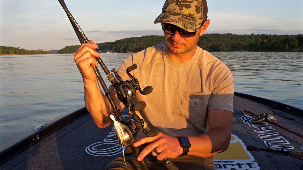 Lee’s subtle lineup includes dragging a Zoom Mag Finesse Worm on a 1/2-ounce shaky head, silently fluttering a 3/4-ounce hair jig and finesse offerings like a Strike King Dream Shot on a 3/8-ounce drop shot. Not only is Lee confident these presentations aren’t as likely to alert bass of his presence, but they’ll get a lot of bites from fish of all sizes, too.