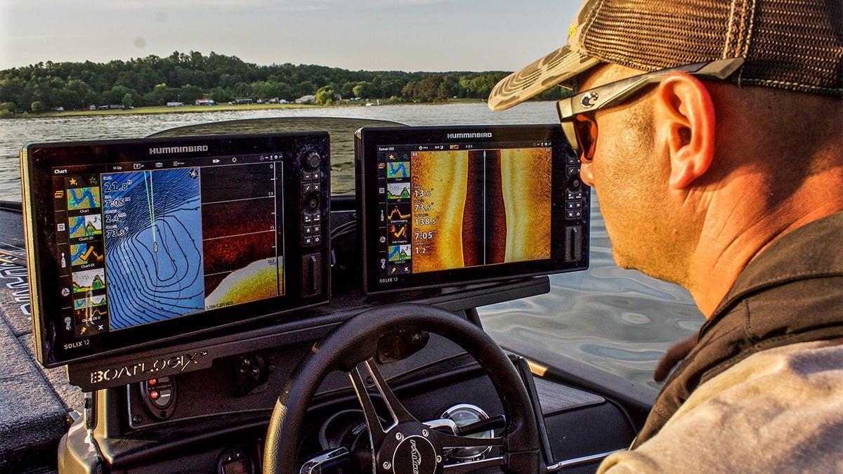 Lee finds fish by idling likely locations and looking at his Humminbird electronics. After he locates a school of bass, Lee weighs several factors before deciding upon the rotation of lures he is going to show the fish. How much current is present? What is the water clarity and angle of the sun? Are these fish likely to have been found and fishing for by another angler?