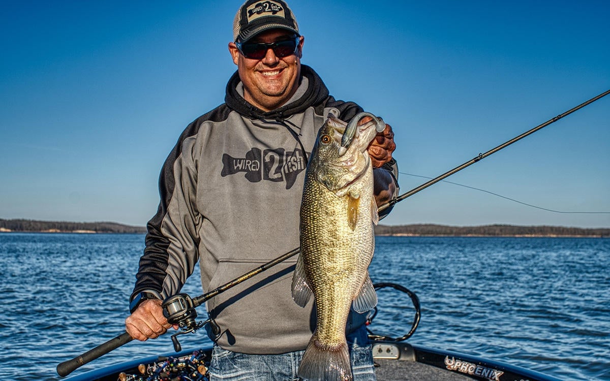 I caught several more good ones doing that. Then this winter I got it back out and pulled up on a place where I had been catching yellow bass on spoons. I backed off and swam the Miyagi Swimmer out in 35 feet of water and caught a 4-pound bass where I had just been snatching on yellow bass and white bass.