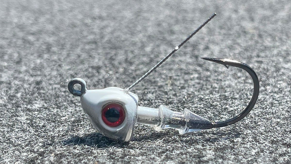 Last year I was running into an issue throwing 1/4 and 3/8-ounce heads to give me a lot of distance as you chase the fish and bait around a lot. But the 3/8-ounce was sinking too much and too fast with little swimbaits. The small 1/4 ounce heads would pull out of the plastic swimbait really easy and I was having to swap tails constantly.