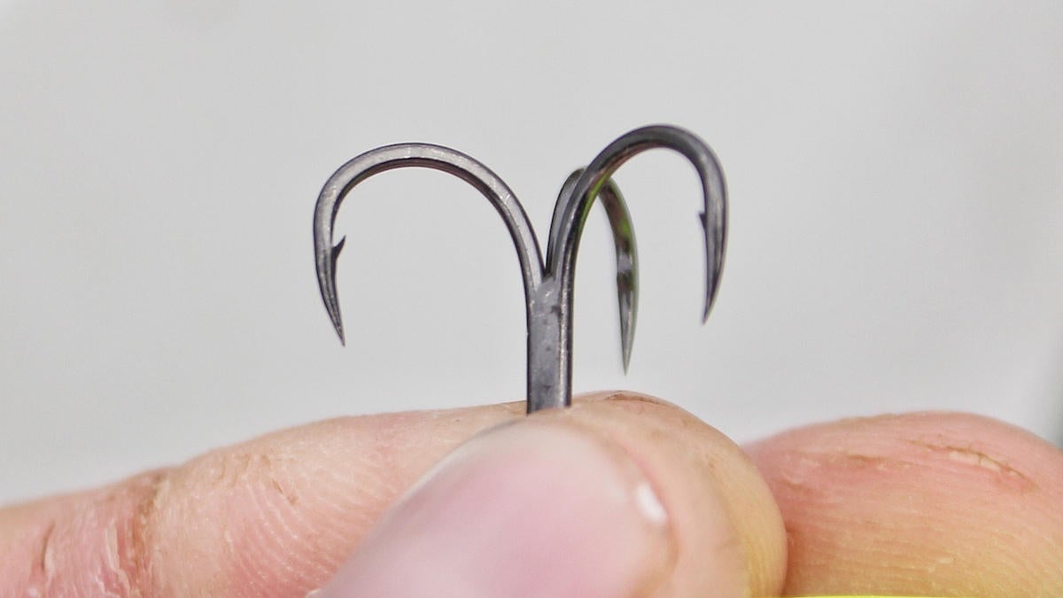 The components with which I’ve been most impressed are the hooks. This thing has some serious gaffs on it. I’ve sworn by triple grip-style trebles for years on lipless crankbaits and squarebills and still do, but there is absolutely no reason to swap out these hooks. They are VMC Premium Hybrid Black Nickel Treble Hooks and they are bad to the bone. Not true round bends, with a slight curl inward near the point, these hooks are extremely effective.
