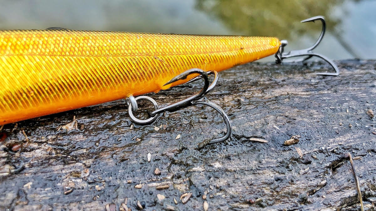 Jerkbaits do best with thin-wire hooks for both the action of the bait and the hookup ratio. Thinner wire hooks are better at penetrating fish in cold water and more effective at connecting with a bass that’s simply swiping at the bait. So these are the right hooks for this jerkbait in my opinion, but just be aware of your drag and be sure you’re not using to stiff of a rod so that when a big bite comes you can make the most of it.