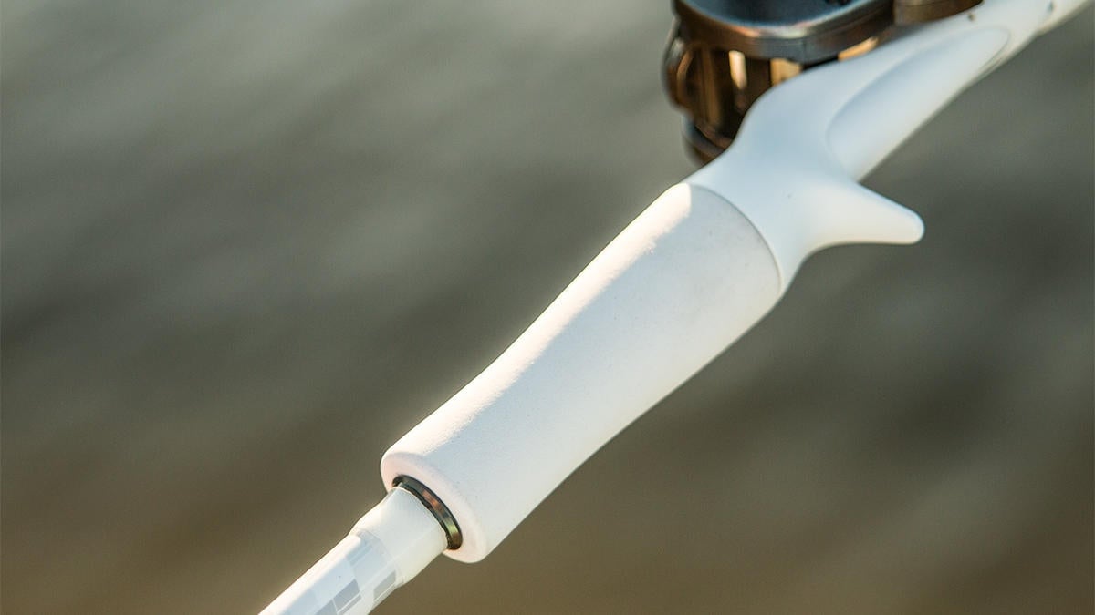 This weightlessness and excellent balance allows you to fish all day long without any undue fatigue or pain. The custom reel seat fits nicely in your hand and also it makes for a great jerkbait rod. The trigger underneath the reel doesn’t rub your fingers raw, even when you fish a jerkbait all day long, which is actually kind of tough to find in a rod.