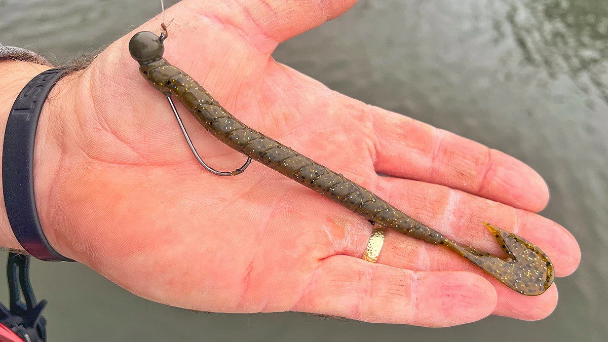 But once you get into the material of the bait, you start to notice some differences. This bait is a little tougher than many similar worms, and it has salt and garlic cooked into the plastic.