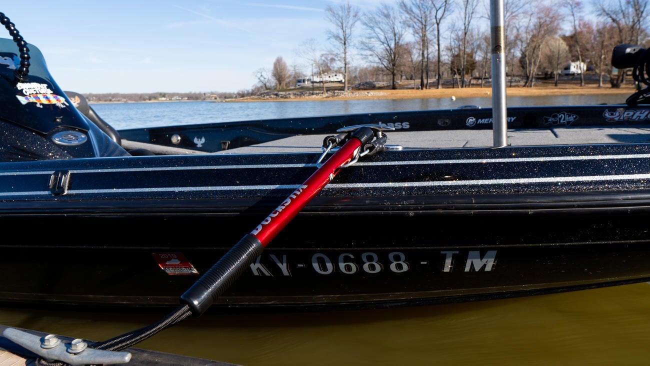 I received a couple of DockStix from our friends at Jewel Bait Company a few weeks back. These handy short rods keep your boat from getting dock rash while you’re loading and unloading at the ramp. I just paid to have a friend wet sand, buff and polish my boat, and really want to avoid anymore dings or scuffs in it. I fish a lot on my own and I like to stay off the beaten path as much as possible. Problem with that is you end up beaching your boat next to some sketchy docks with loose screws, torn bump rails and worse. And since it’s hardly ever calm on Kentucky Lake, that adds up to a lost of scuffs, chips, scrapes and torn rub rails. So I was excited to get the DockStix in the hopes it would keep my boat off the dock.
