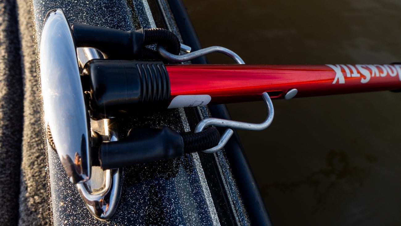 I’ve been putting my Power-Poles down on shallow docks and just using one DockStix to keep the boat the perfect distance away. Because the cord is heavy duty elastic, you can step in and out of the boat without it bumping or rubbing.