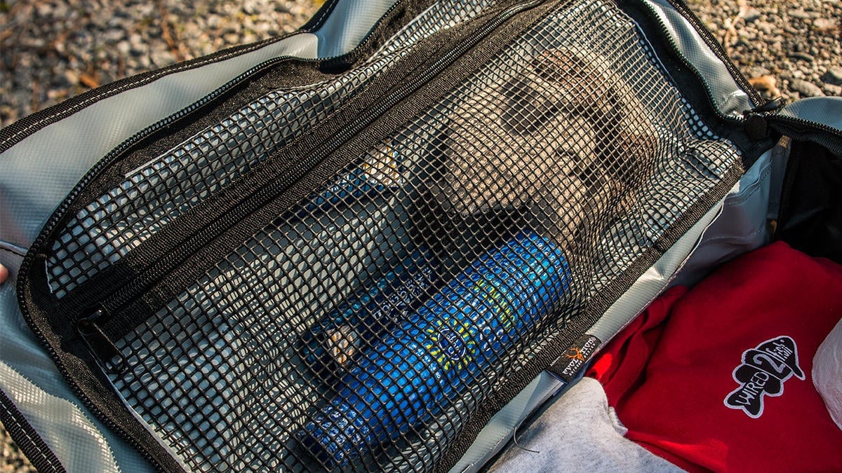 So far, however, the Evolution Outdoor Tarpaulin Series Fishing Gear Bag has kept my clothes, towels, socks, toilet paper and everything else bone dry throughout every condition. While shooting these photos, my wife actually dunked the entire bag underwater (I had a mini heart attack) and guess what? Not a drop of water in the bag. Everything was completely dry. You can’t ask for much more than that.