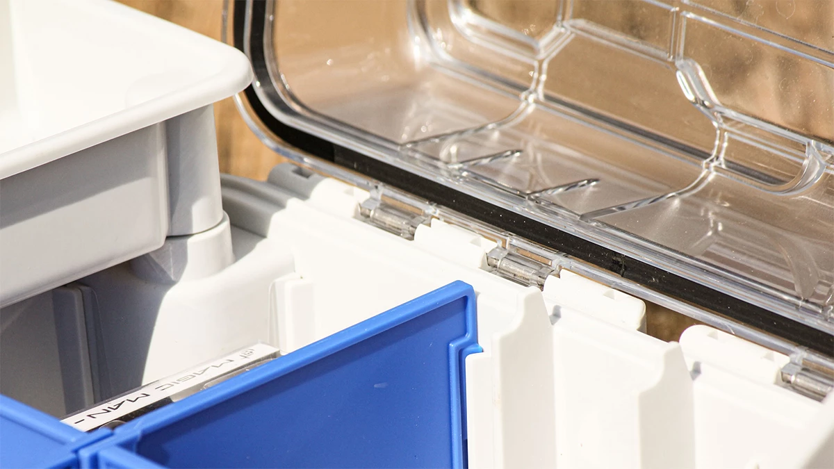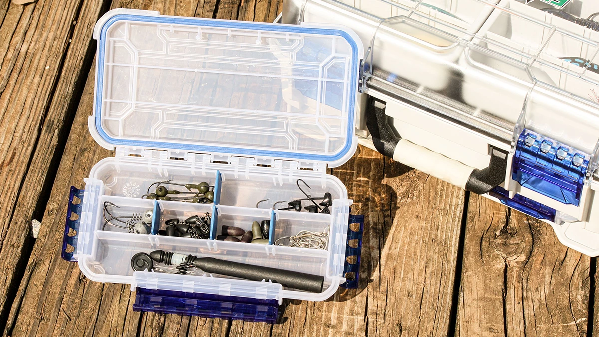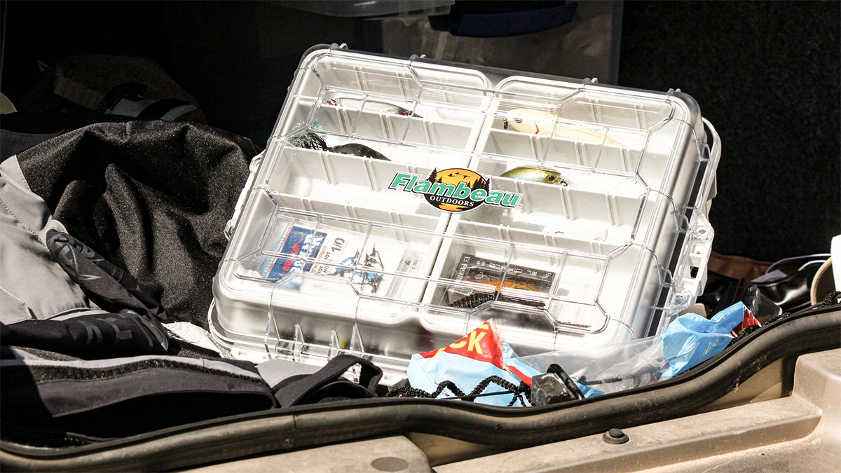 In addition to incorporating what has worked well in the past, Flambeau eliminated what didn’t—primarily the vulnerability of baits and gear to moisture, which those older methods of storing tackle were so susceptible to. With waterproof seals throughout the main compartment and the two additional smaller Tuff Tainers, there’s lots to love in this tackle box.