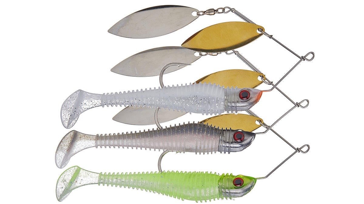 This is important on a spinnerbait where the upturned chin of the swimbait head encased in plastic seems to just slip right past a branch or stalk of grass.