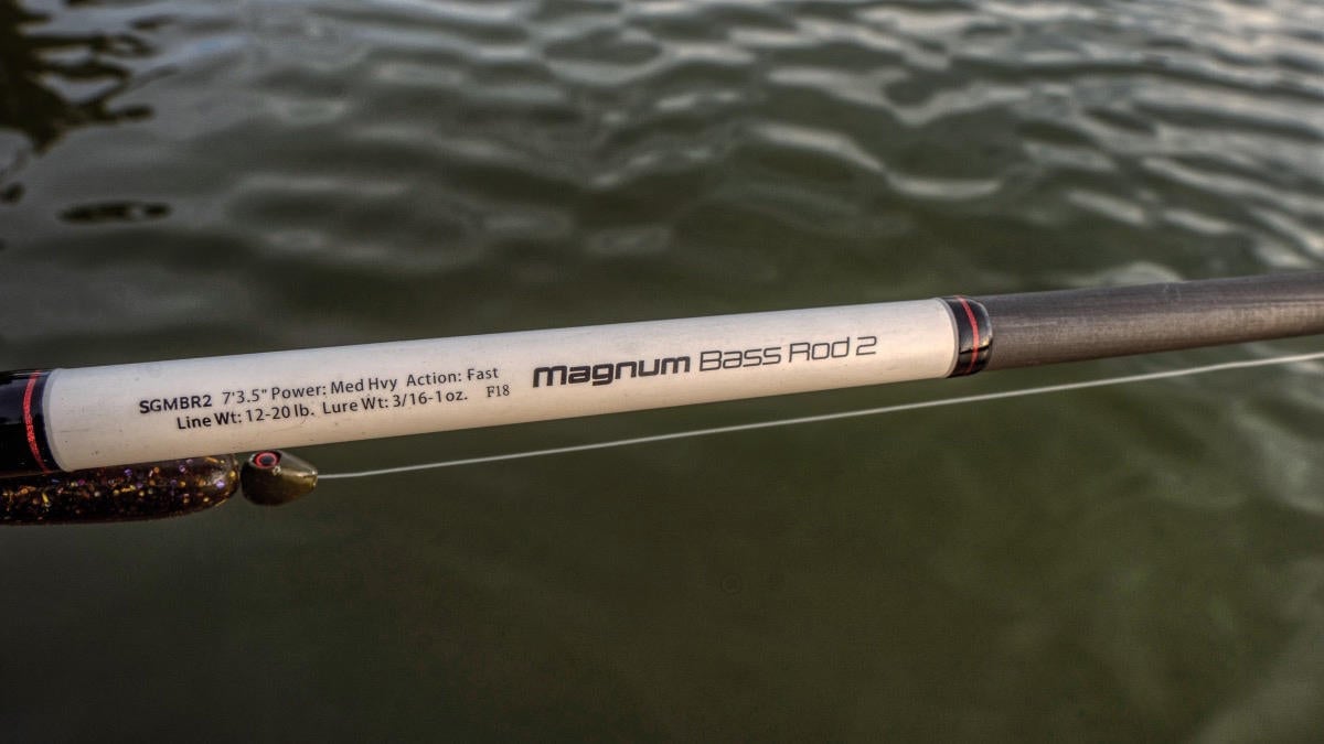 This is the Magnum Bass 2 rod which is just a bit longer at 7 feet, 3 1/2 inches. The tip has a little more castability and little more umph. I really like this rod for casting a jig to brush and fishing a hair jig. I’m sure there are some other good applications as well. Probably be a great worm rod, a great football jig rod. Maybe even a good big topwater or Chatterbait rod.