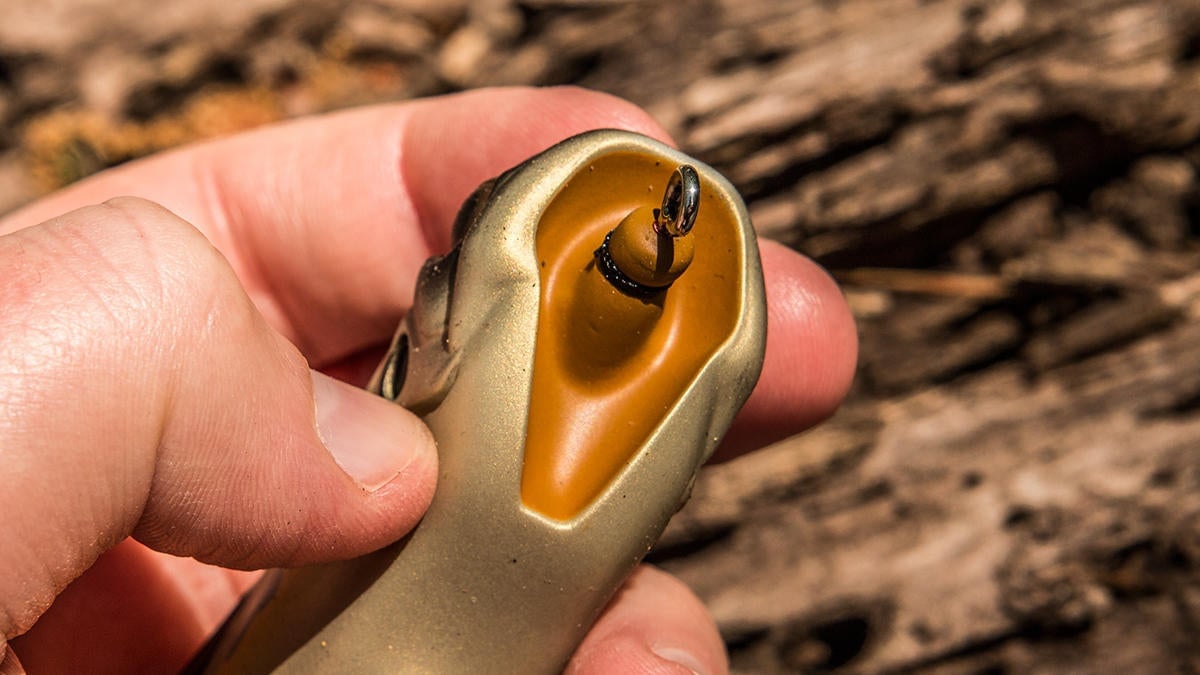 First, it allows it to spit water throughout the retrieve. It makes a different spitting sound than any other frog I’ve ever tested, which is probably another major reason I’m getting so many bites on it. My home lake gets hammered with frog fishing pressure for much of the year, but I’ve been going behind guys and catching good fish with the Big Gabot. That unfamiliar sound is a huge deal when you’re fishing pressured waters.