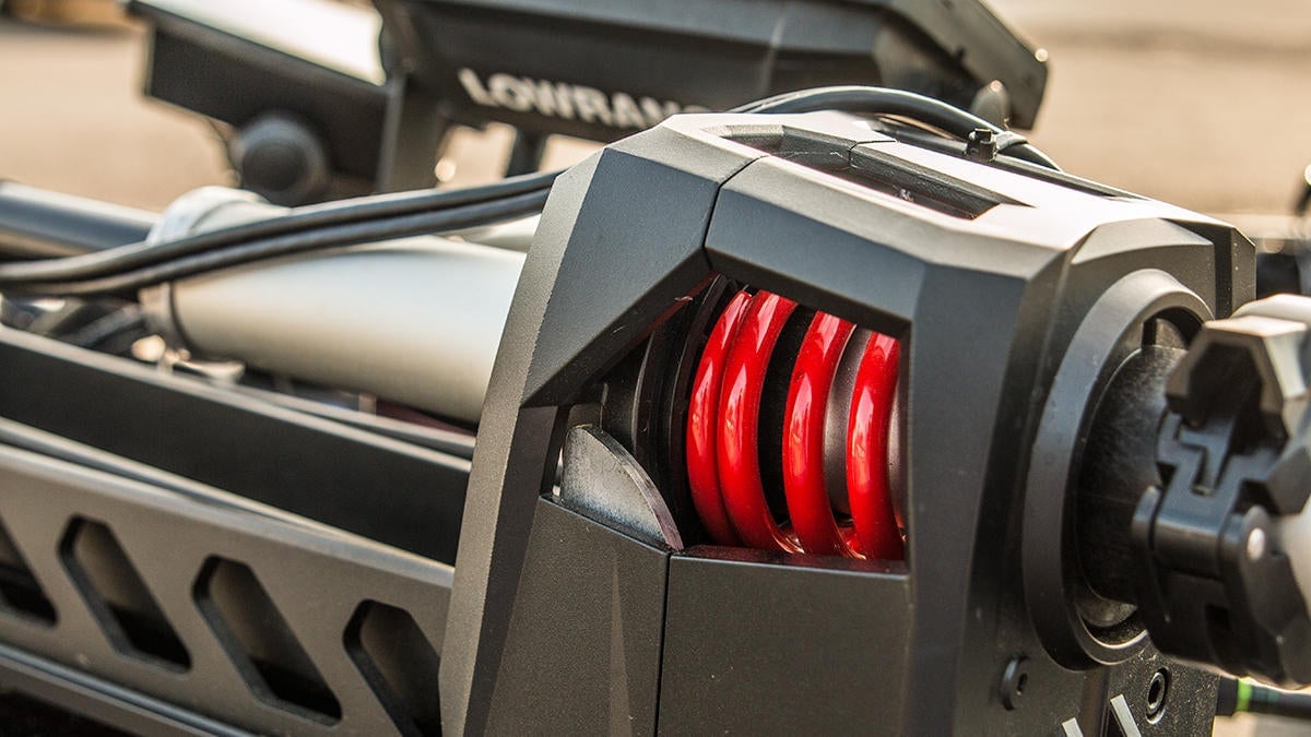 The motor just looks tough. Everything on it seems to be overbuilt, from the oversized aluminum outer column to the rugged aircraft-grade extruded aluminum mount. And that bright red spring gives it a nice color pop.