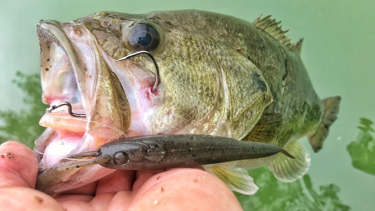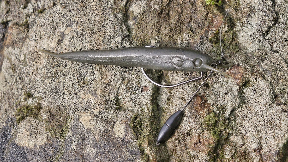Though I liked fishing this bait on a slow fall and working it along the surface like a jerk bait, I really like it best fished along the bottom. You can do this by rigging the bait on a shaky head, a lightweight Texas rig, a Tokyo rig or a Carolina rig. But there’s a reason I like it on bottom best.