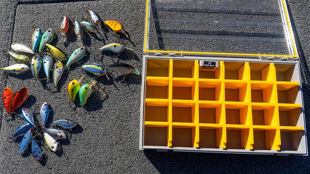 By seasonal box, I’m referring to the fact that I take a lot of stuff out of my boat from season to season but I like to keep a few of certain baits I know are my hot tickets during that certain window. So right now I might take a bunch of soft plastics and deep divers and topwater out of my boat. But I will still want to keep a few topwater in there just in case, a swimbait or two and then some lipless, coldwater cranks. I like the new Edge FLEX box to hold a lot of different things in one box that cover a lot of box for the season and transition time right now.
