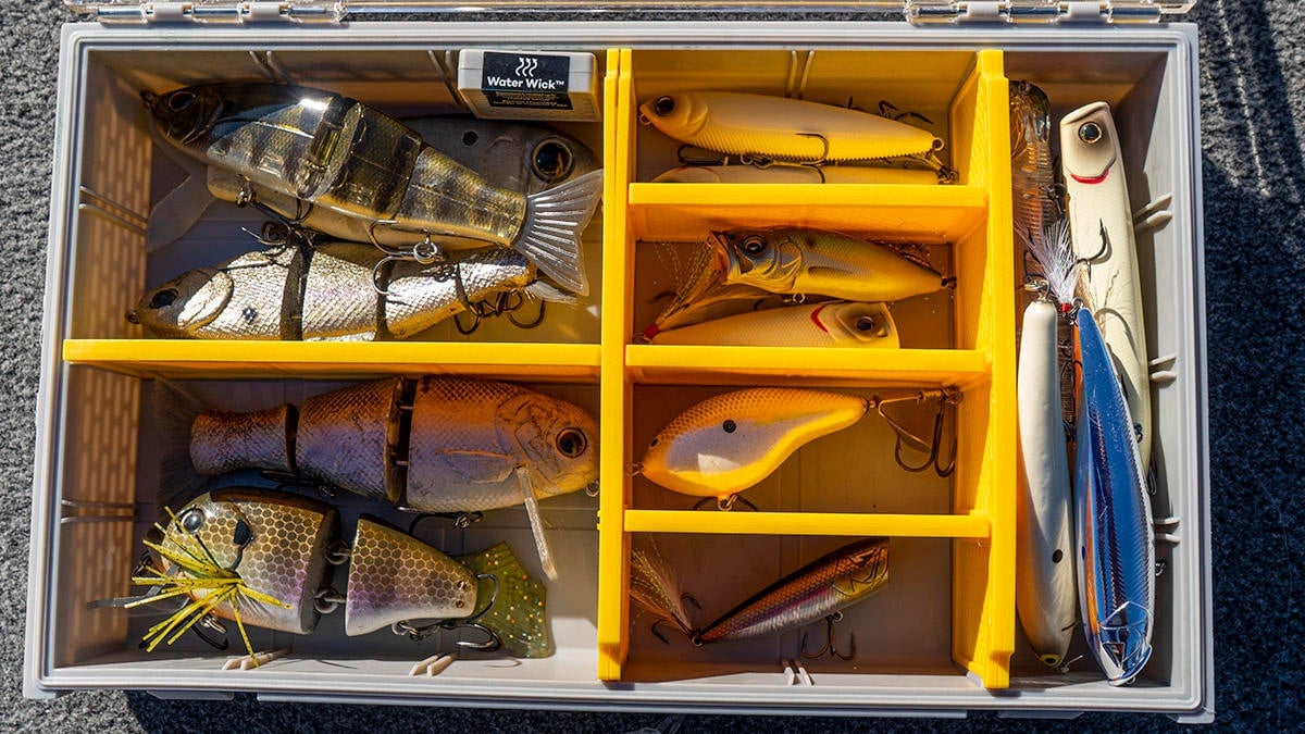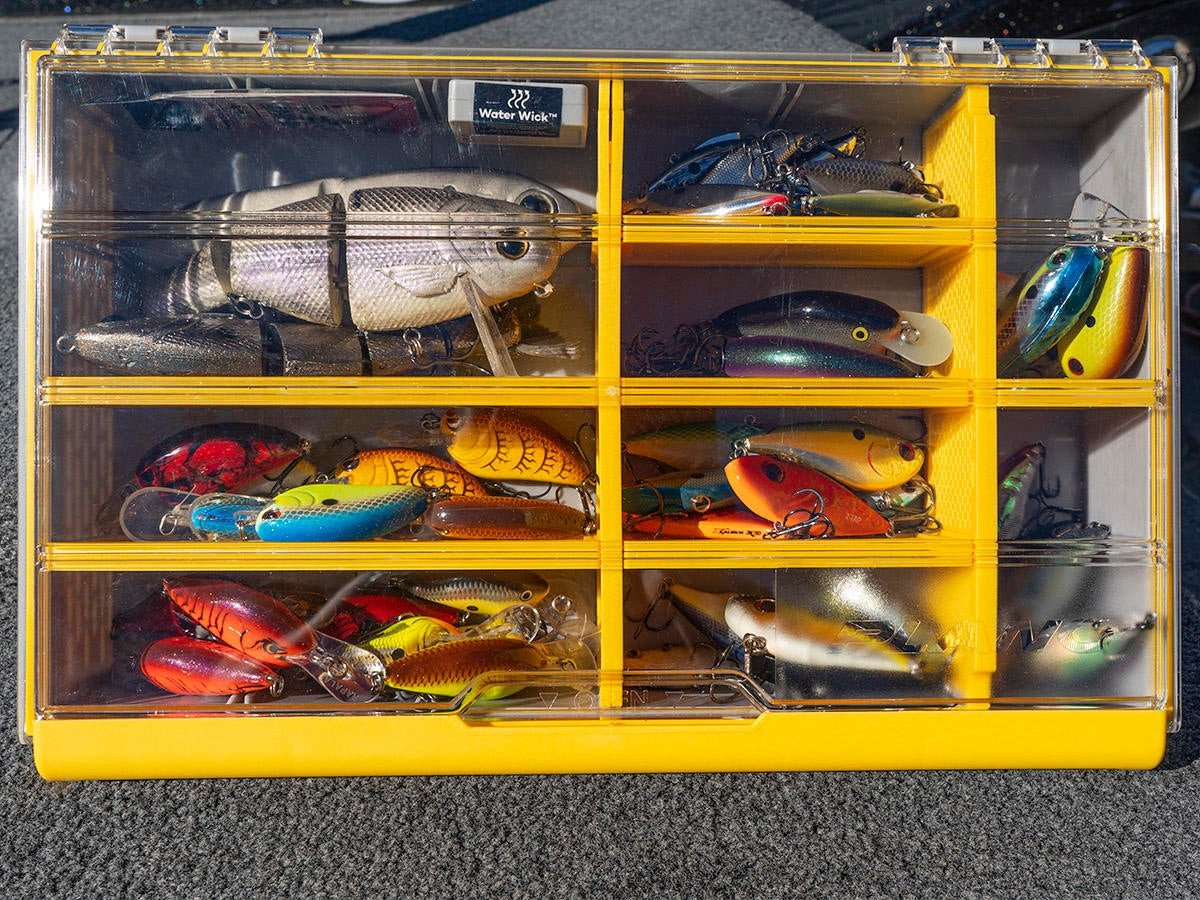 I can throw in long topwaters, big swimbaits, small crankbaits, midsized topwater, jerkbaits, spinnerbaits and all sorts of odd shaped lures neatly into one box varying each compartment to fit what I want to carry. It’s a slick way to create a day box for fishing whether you’re fishing on your own or with someone else.
