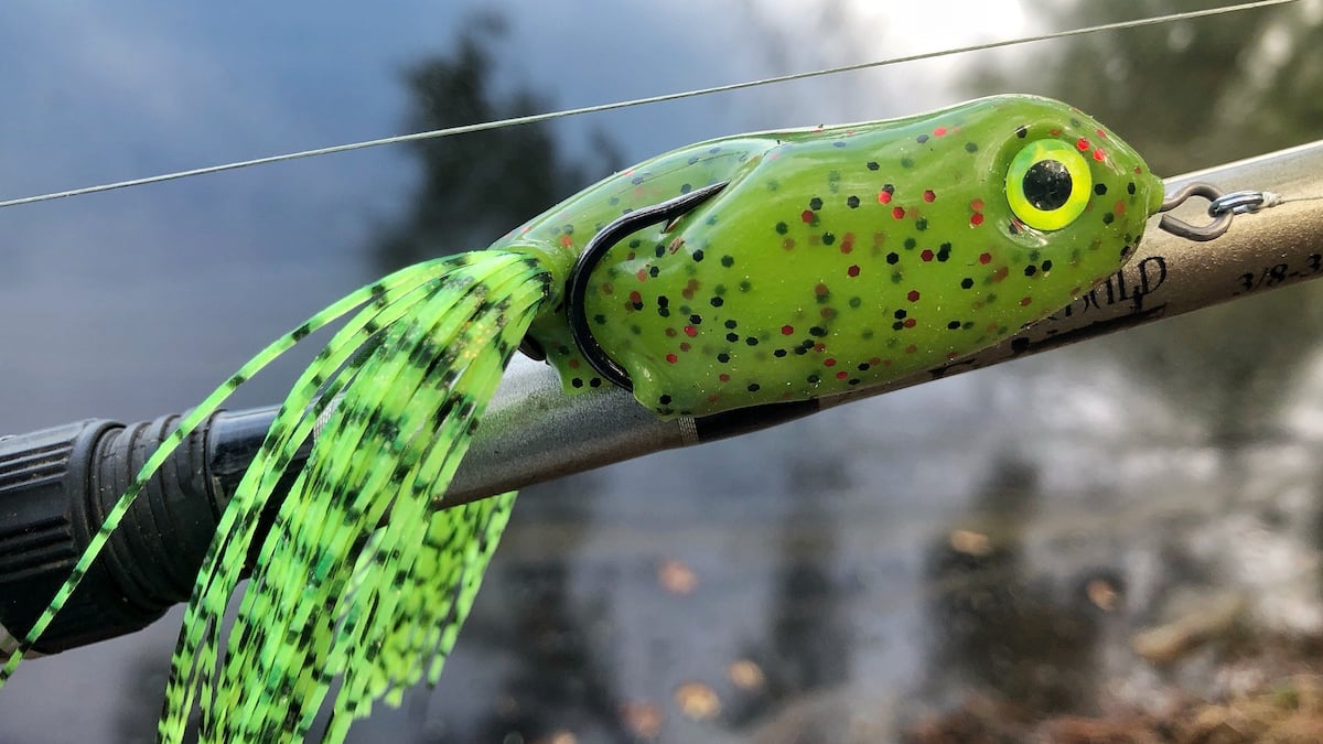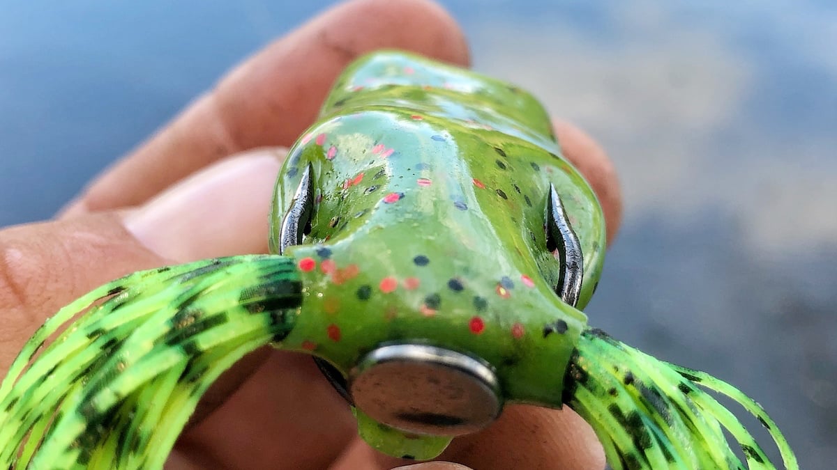 I also like how they used the body of the bait to make this lure weedless. It’s obvious from the name, these frogs are built to be thrown into some really nasty stuff, so they’re going to need to be pretty weedless. With a raised back and indented sides, Scum Frog created little channels for the hook points to kind of tuck into and stay out of trouble. But when a fish bites and the body compresses, the hooks are right there ready to lodge into a bass.