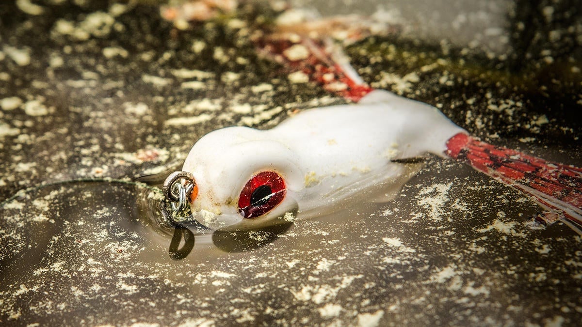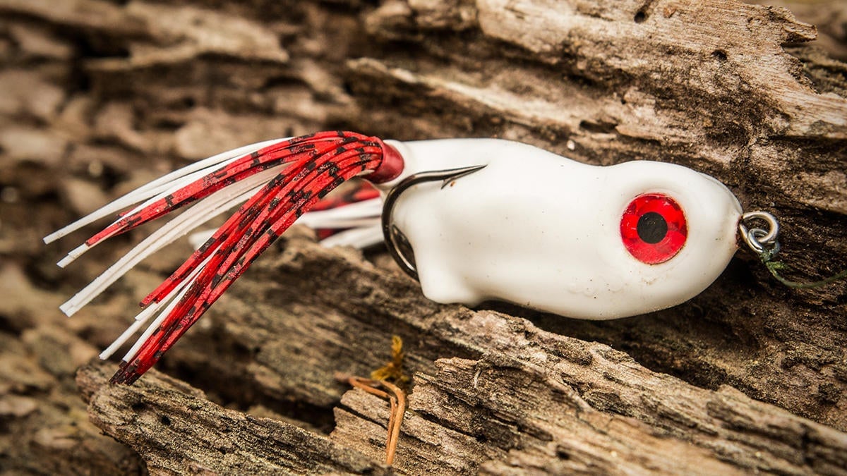 You’ll also notice a split ring attached to what would normally be the line tie. This addition certainly caught me off guard, but I’ve learned that it allows the frog to walk even easier. So far, the split ring has held up wonderfully to the rigors of heavy-cover frog fishing.