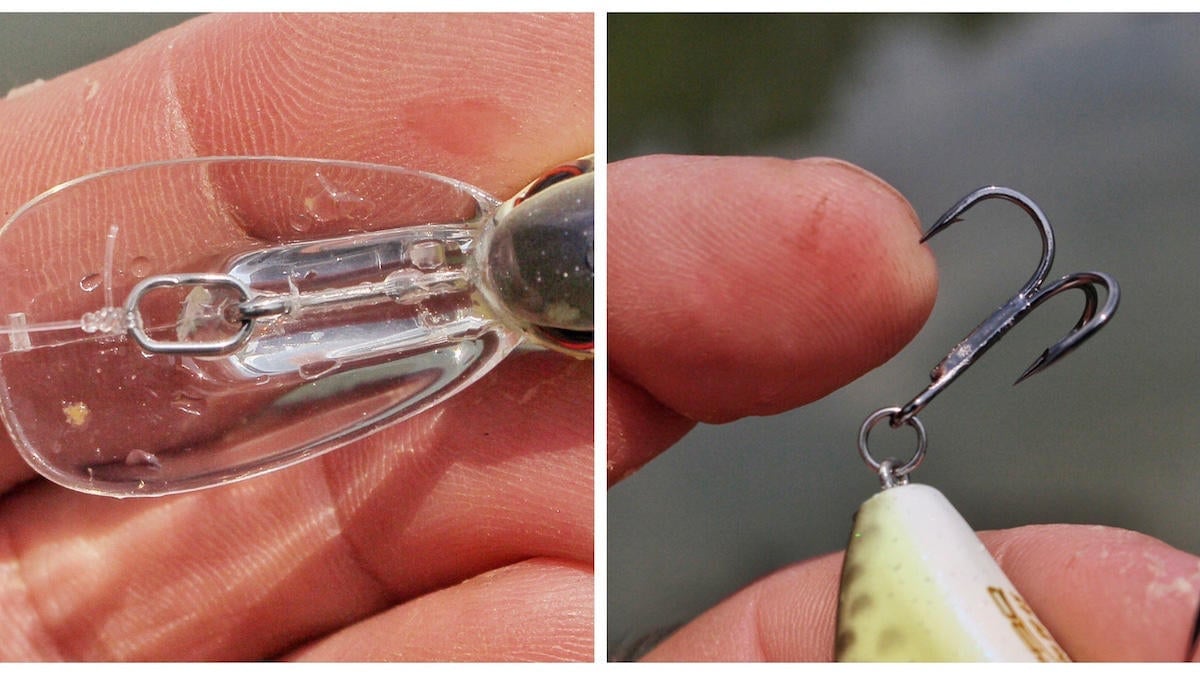 Equipped with thin-wire, round-bend Gamakatsu treble hooks, the Micro DD is definitely a sticky little bait. The oval split ring on the line tie is nice, too. I like oval split rings for line ties versus circle ones because they seem to help the bait run better. The Micro DD certainly runs true right out of the box too but I did notice one thing worth mentioning.