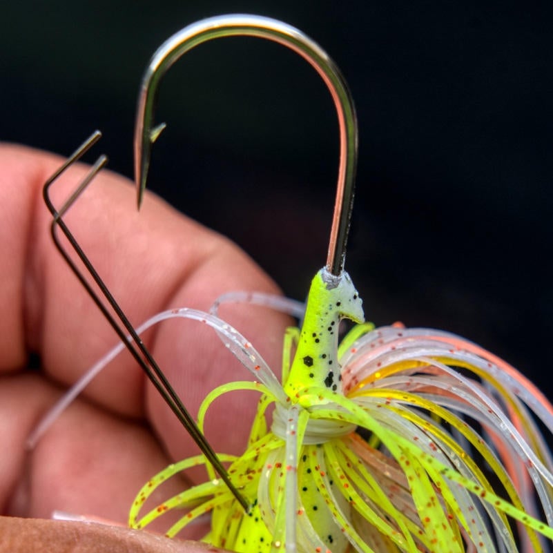 This new vibrating jig offers a unique sound, weedguard, hand-tied skirts, widest array of color options, great keeper and more.