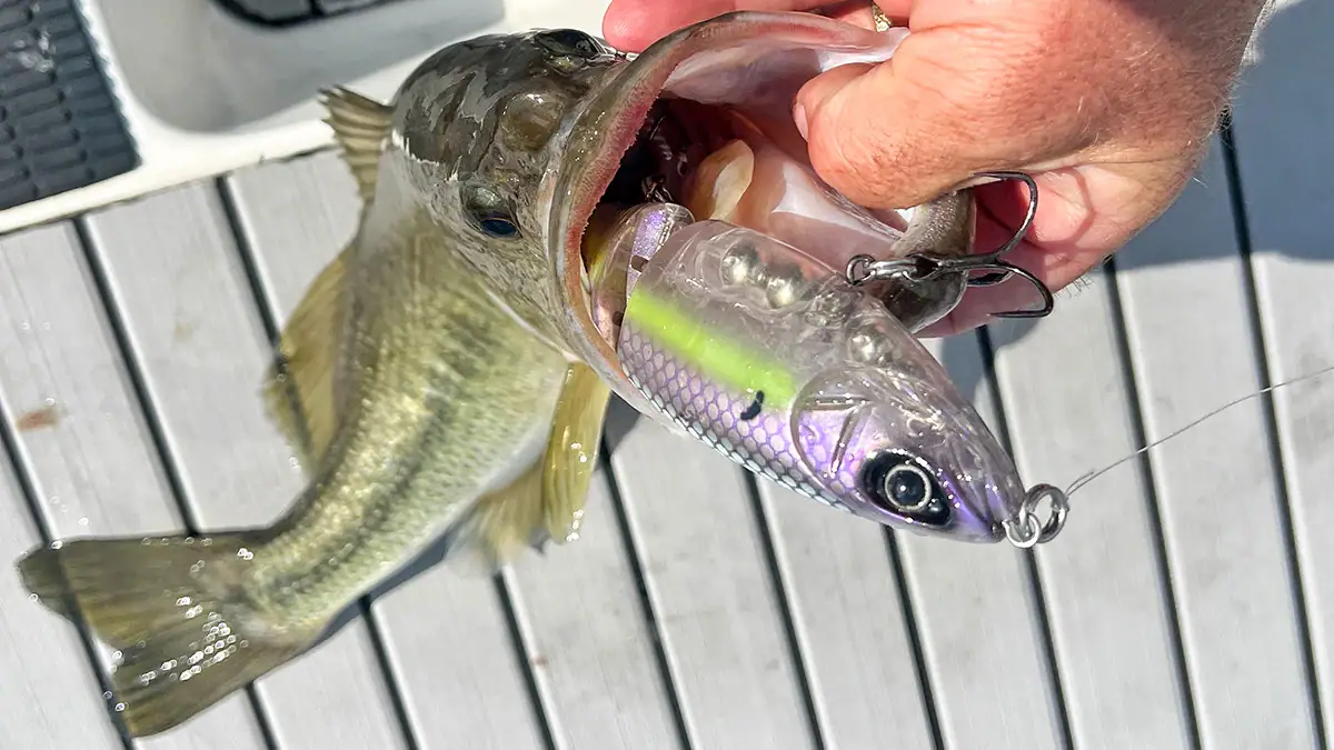 I had a hard time getting bites early in testing this bait. But I think that had more to do with the season, since I started testing it in cold water. As temps warmed, I caught a couple of really nice fish in public water. One barely got hooked; the other bass, however, was over four pounds and inhaled this glide so hard that the bait went halfway down its throat.