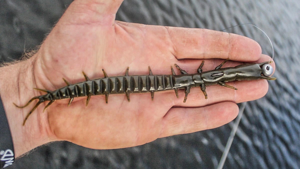 The Tackle HD Mega Mite is a disgusting looking creation but man, does it catch fish. A mix between a worm and a creature bait, this 8-inch aberration is the oversized brother to the same brand’s 5-inch Hellgrammite. The smaller Tackle HD Hellgrammite was created from a 3D scan of an actual hellgrammite, the larval state of an eastern dobsonfly.