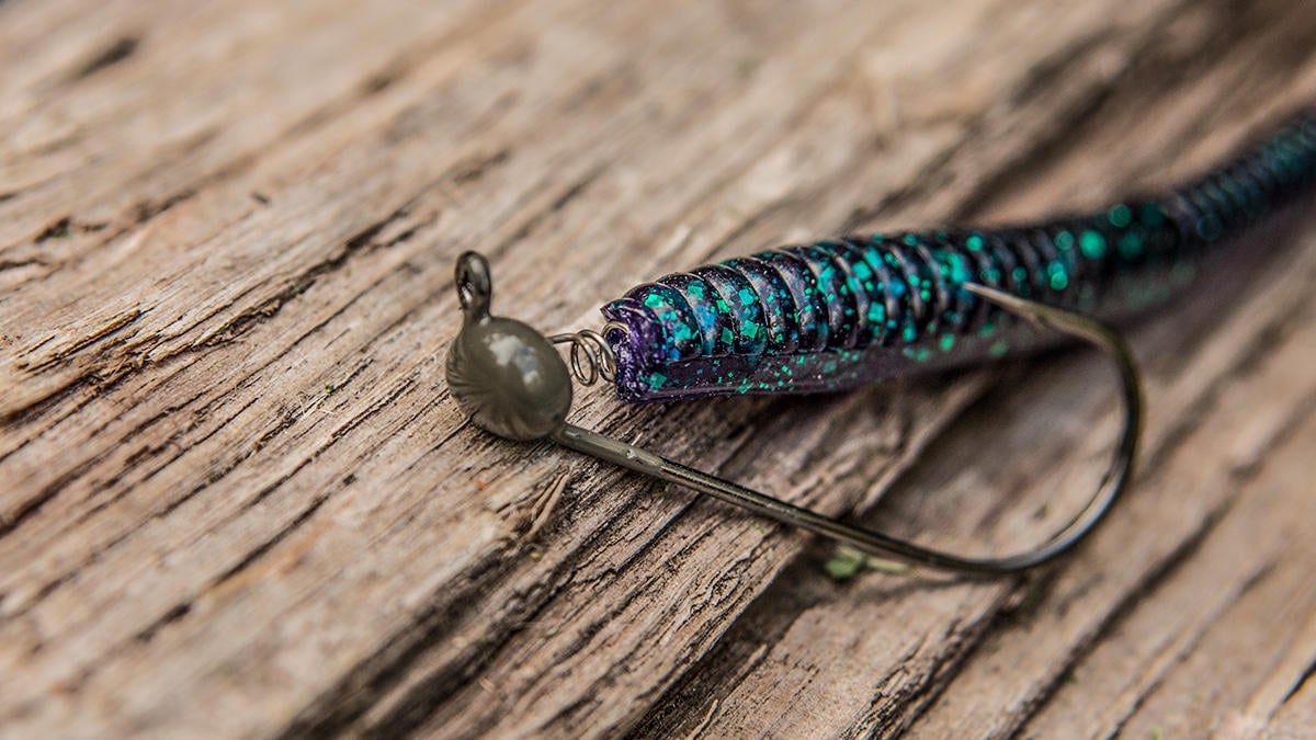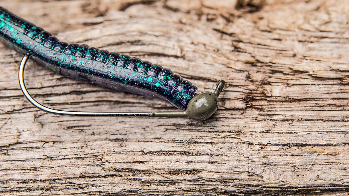 This particular shaky head is made of 97 percent pure tungsten and it’s built around a 4/0 Mustad Ultra Point hook. The hook is thin wire, which I really like for this technique. It’s thin and sharp enough to facilitate efficient hooksets, even when you’re fishing with 8-pound test and a light-action spinning rod. If it bites, you’re probably going to catch it.