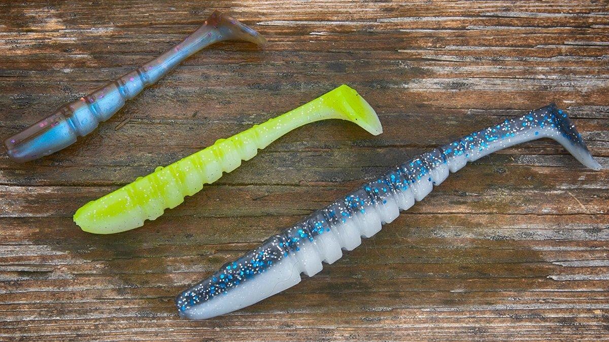 The Swammer has a flat top and ribbed sections that give it a very nice action in the water. The plastic formulation is the right mix of softness for a good tail thump and roll but durable enough that you can catch a bunch of bass on bait and it stayed on 1/4-ounce jigheads really well.
