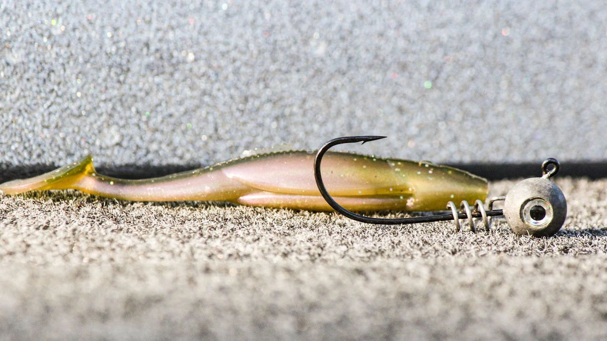 But as for the screw-lock heads, if you can learn to effectively and quickly rig them, they are great at eliminating waste. The best way I’ve found is to gauge the spot where the hook point should come through the back of the bait as you would any other jighead. As you start to screw the bait onto the jighead, take the lure by the tail and wrap it around the hook shaft. This allows the resistance of the soft plastic to help you instead work against you, like it would if you tried to pinch the head of the bait and twist it on there.