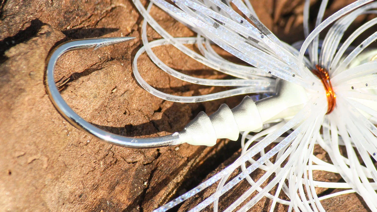 The hook should be fairly stout, not super thin; thinner hooks have a tendency to bend. It’s hard to tell sometimes by just looking at the hook in the packaging if it’s strong enough, but it is typically pretty easy to tell if a hook looks too thin on the other hand. As long as the hook isn’t alarmingly skinny, you should be good. And the stock bend in the hook will also help you pick out a stronger hook, as a circular bend is strong as well as an O’Shaughnessy bend, where the hook point turns slightly in like you see here.