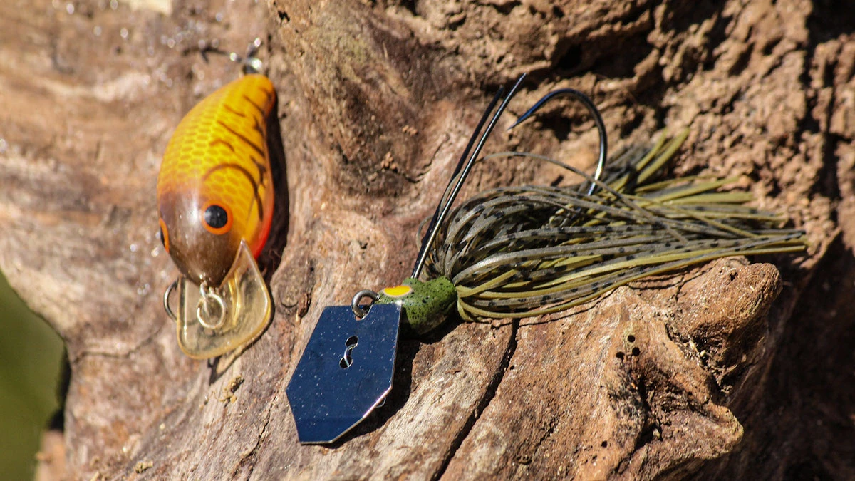 This makes a squarebill the perfect complementary bait when fishing around wood, rocks and docks and a swim jig is a great selection when fishing around vegetation. Both of these baits complement a spinnerbait well because they have smaller and less flashy profiles while still mimicking the same bait fish as the spinnerbait.