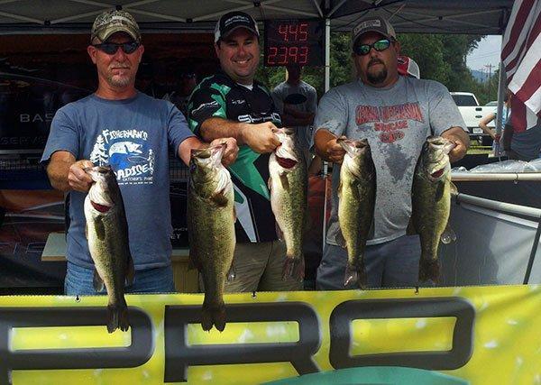 Some big weights were caught in the Spro Frog Tournament on Lake Guntersville Saturday. But the team of Coffman and Davenport won with a five bass limit weighing 23.93. The team of Logue and Bradford caught the big fish of the event with a 6.97 pound lunker. More details on the tournament soon. For now here are the standings of the top 25 teams.