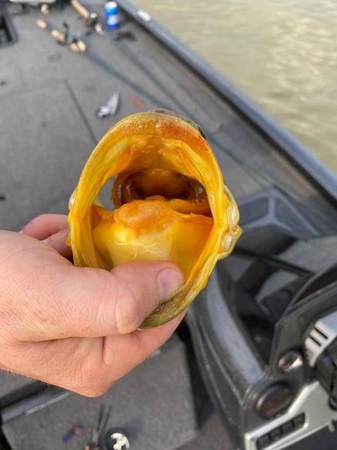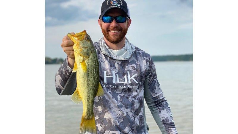 Rogers was throwing a swim jig when he caught this unique largemouth bass he guessed at about 2 pound. He took pictures in hopes someone could identify the interesting coloring of this fish and let it go. After talking with biologists from the Arkansas Game and Fish Commission, Rogers is going to have a replica made of the fish from the photos.
