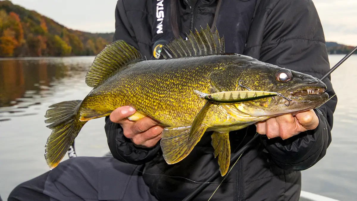 These lures can also be counted down to target suspending fish. Casting a small 2.5- to 3-inch finesse swimbait on a light jig is a good tactic for tempting fussy walleye in clear water.
