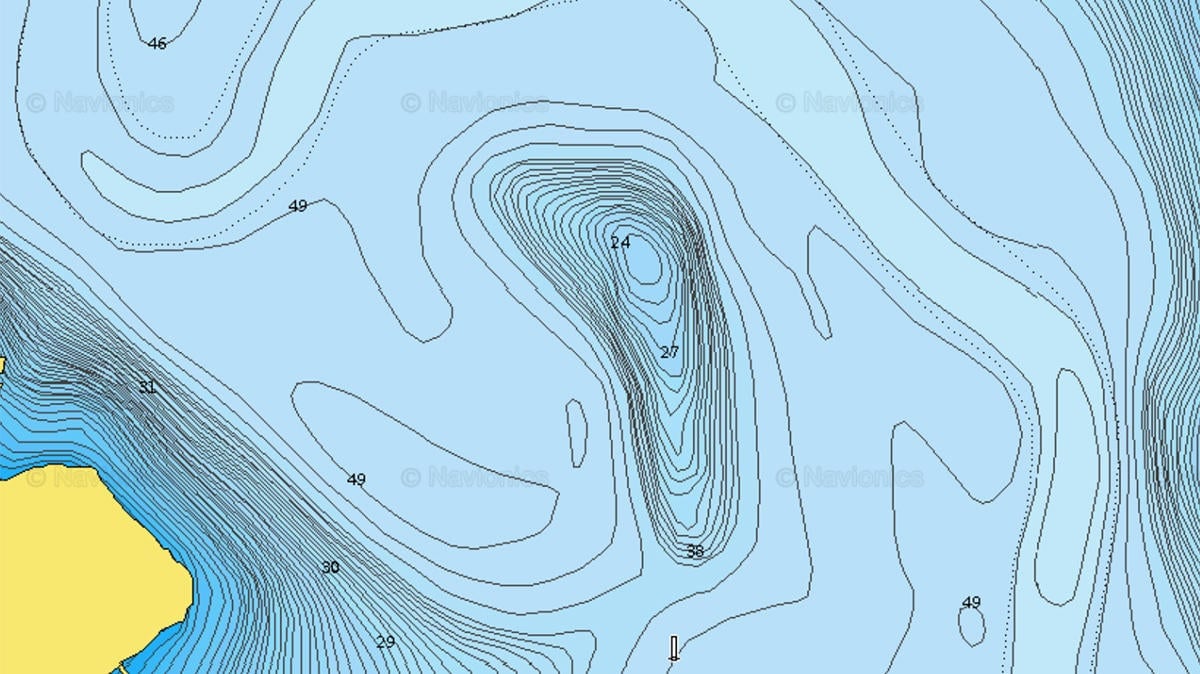 Humps, as pictured above for reference, are very easy to find on basic contour maps. The large majority of lakes have dozens of prominent humps in them and they’re bass magnets throughout much of the year. Heck, they’re even striped bass, white bass and catfish magnets, too. If it swims in the lake, you’ll probably find it somewhere near a hump.