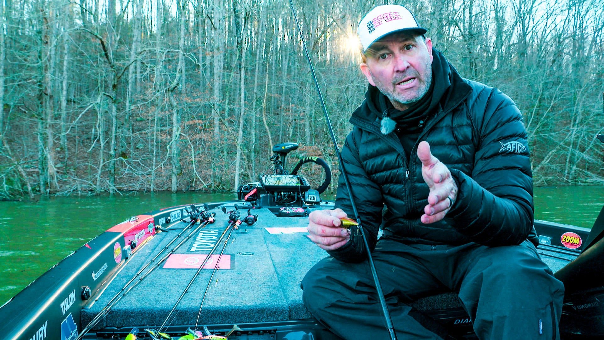 Gerald Swindle is an old school cranker when it comes to winter bass fishing. He likes to cover water, grinding the bill off of crankbaits looking for active fish. In the winter and prespawn, a crankbait is his go-to lure for bass fishing when he’s trying to find the most active fish in cold water.