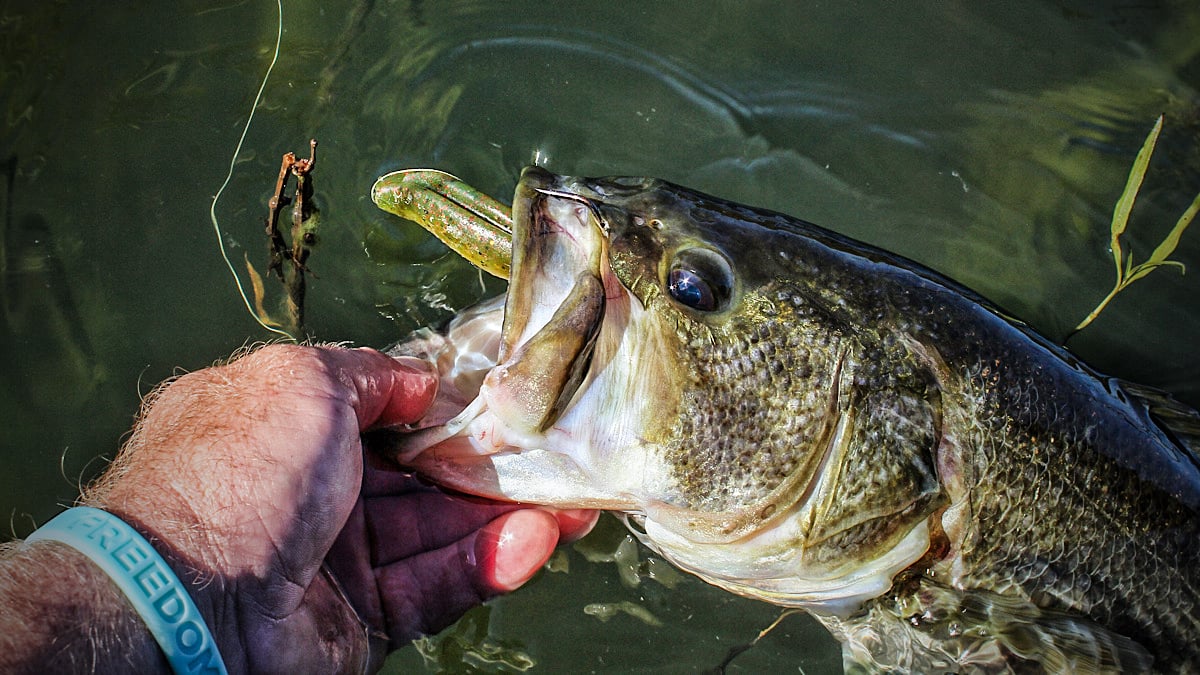 Instead, when fishing with a weightless or belly weighted Texas-rigged soft-plastic swimbait, I’m looking for whatever vegetation is left that I can find. We’re talking lily pads, pad stems, water willow grass, coontail, milfoil, hydrilla or some other type of living vegetation or whatever’s left of it after it had gone dormant.